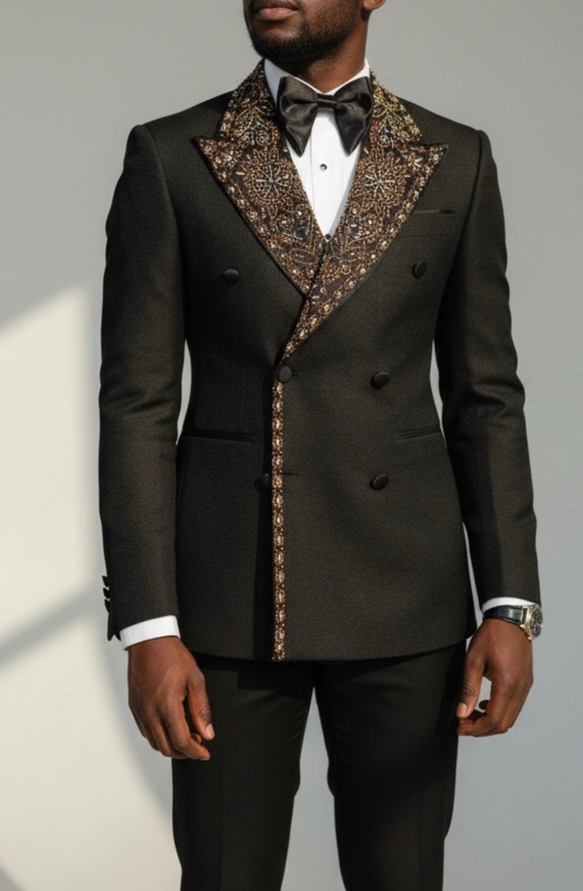 Paired with a crisp white dress shirt, silk bow tie, cufflinks, and patent leather shoes, a luxury tuxedo presents a timeless, commanding presence—perfect for black-tie events, weddings, and any occasion where elegance is essential.